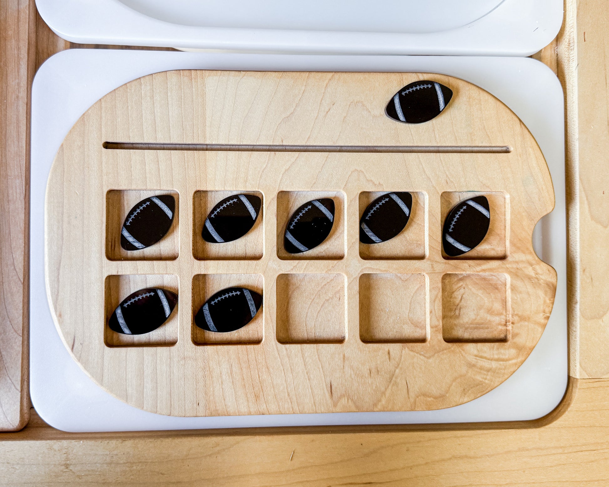 These footballs are sized to fit our counting inserts as well as our craft stick inserts.