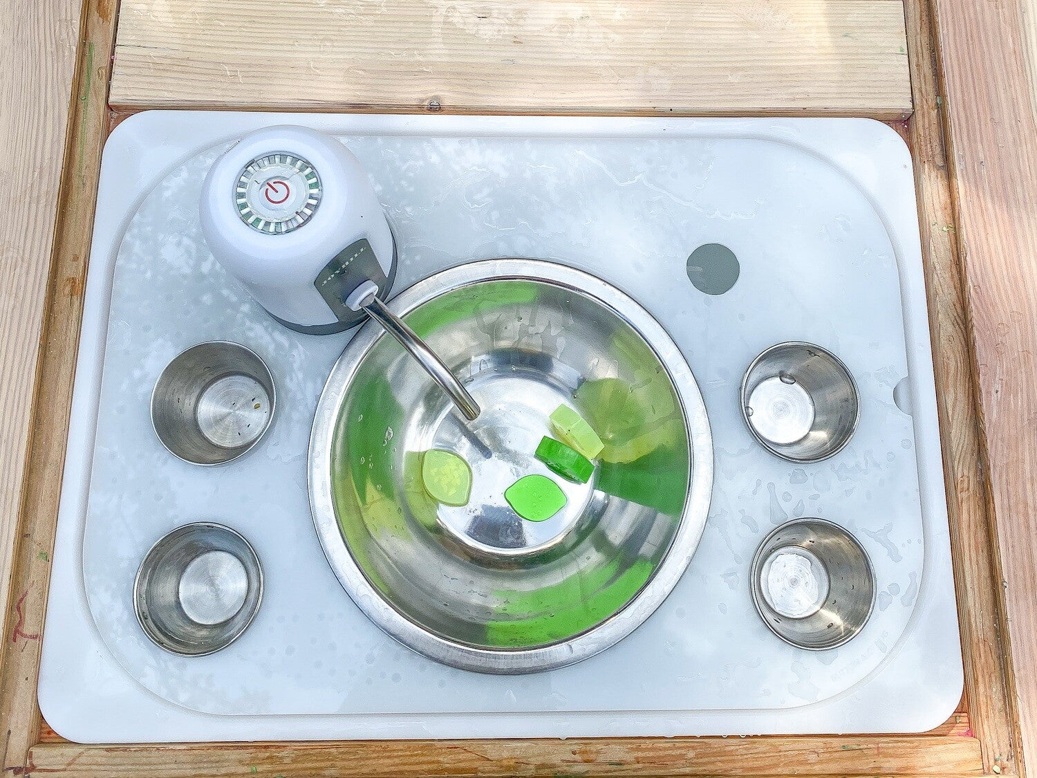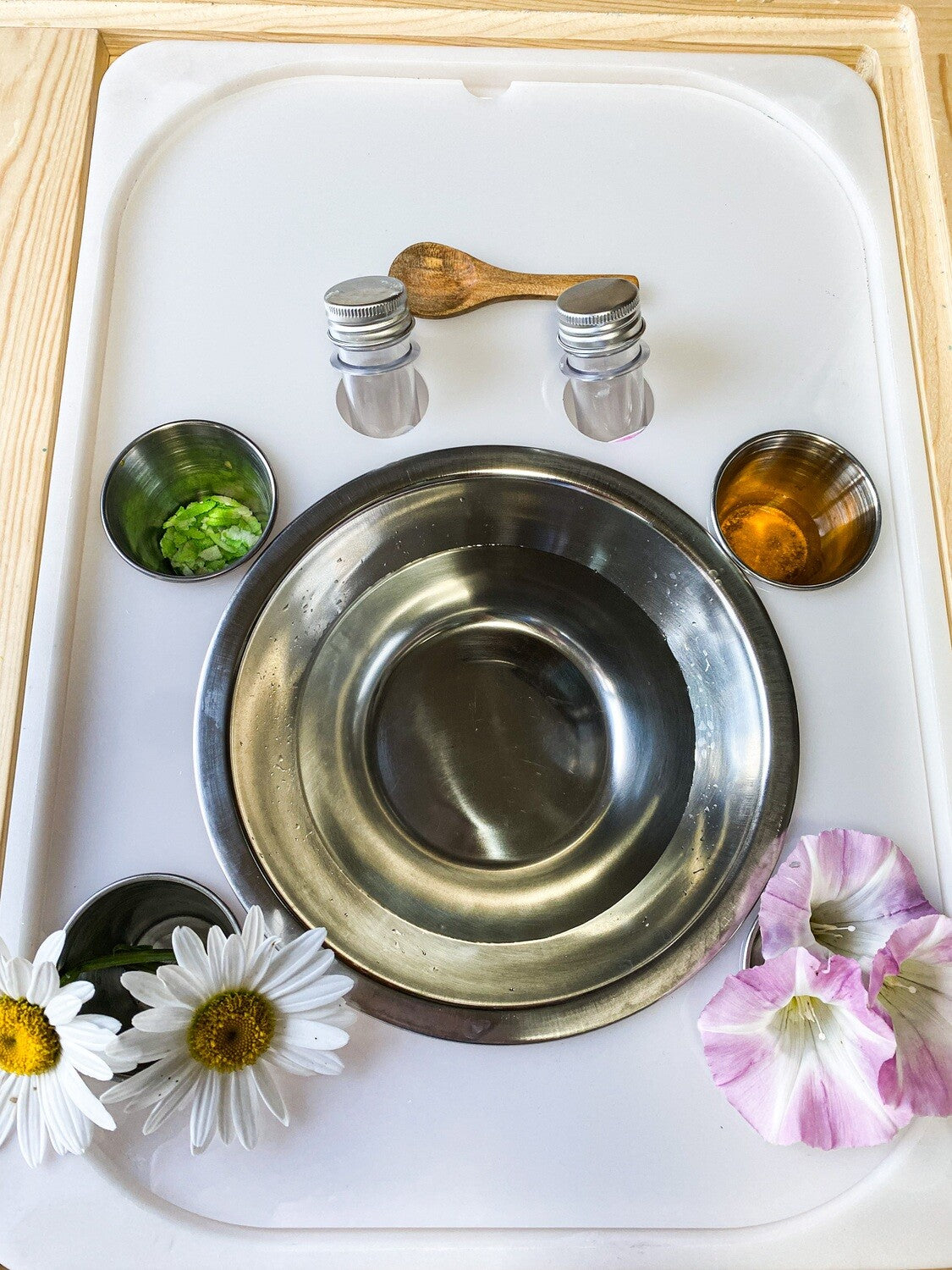 This insert for the Large Trofast Bins comes with a Stainless Steel Mixing Bowl, 4 Stainless Steel Cups, and 2 Flat Bottomed Test Tubes for pouring & mixing potions.