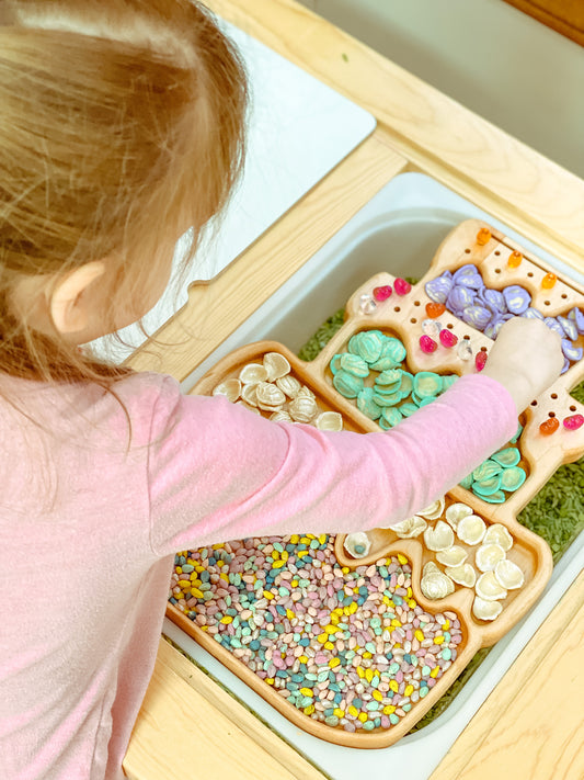 Many of our Flisat Sensory Inserts and Boards will also come with different ways to change up the play of the activity and work on a larger variety of skills. These ideas will come from my years of experience as a Pediatric Occupational Therapist (MS, OTR/L). All of our Inserts & Boards are created with the idea of helping your child master new skills for a variety of age groups. Our Instagram page is constantly generating helpful guidance and activities you can do, both from us and other parents.